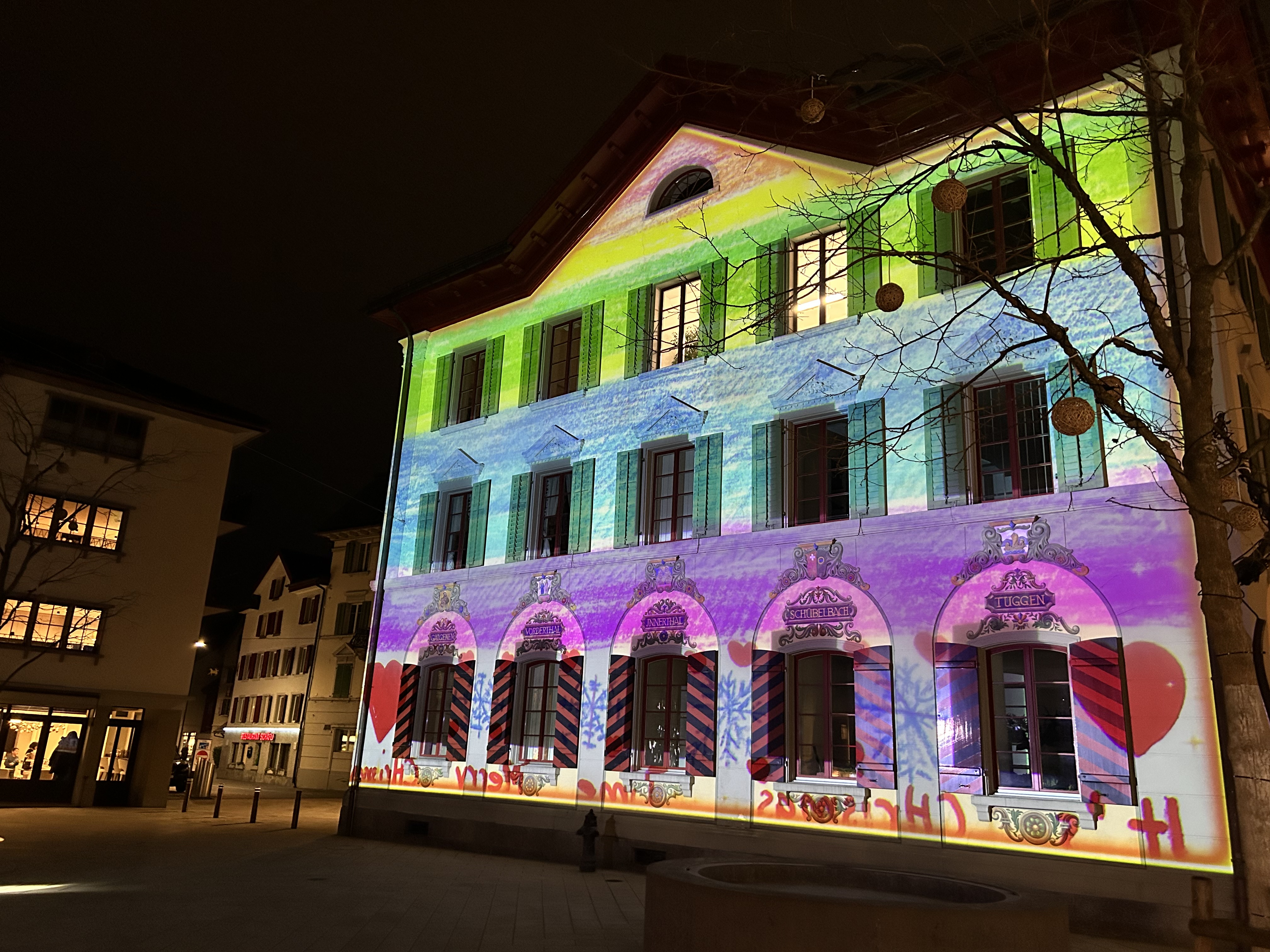 Wer nach Einbruch der Dunkelheit in Lachen unterwegs war, konnte es wohl nicht verpassen - auch im Winter 2023 leuchteten wieder einige Häuser im Dorfkern.