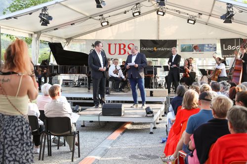 Durch das Programm führte Bastian Thomas Kohl, ein Opernsänger aus Lachen und zugleich künstlerischer Leiter des Konzerts. Der Gemeindepräsident Emil Woodtli wurde ebenfalls auf der Bühne willkommen geheißen. In seiner kurzen Ansprache zeigte sich Woodtli begeistert von dem Event und bedankte sich bei den Sponsoren, die das kostenlose Konzert ermöglichten, sowie bei den zahlreichen Helfern und Veranstaltern, ohne die dieses beeindruckende Konzerterlebnis nicht möglich gewesen wäre.